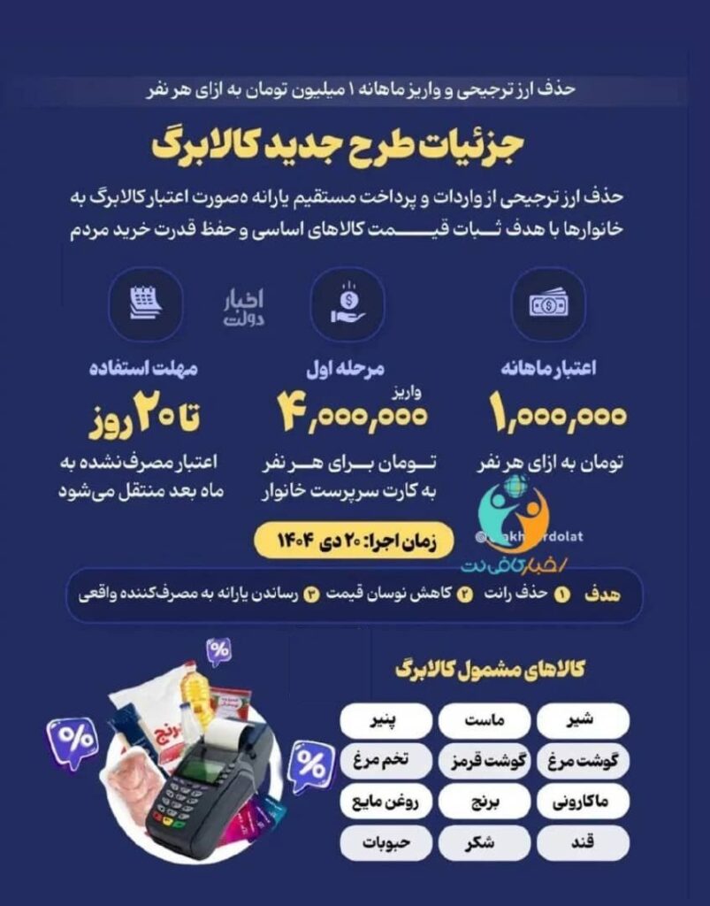 دولت ایران اخیراً از طرح جدید کالابرگ الکترونیکی رونمایی کرده است که به آن رسانهها عنوان یارانه یک میلیونی برای هر نفر را دادهاند. این طرح، بخشی از سیاستهای حمایتی دولت برای حفظ قدرت خرید مردم و تأمین کالاهای اساسی محسوب میشود.